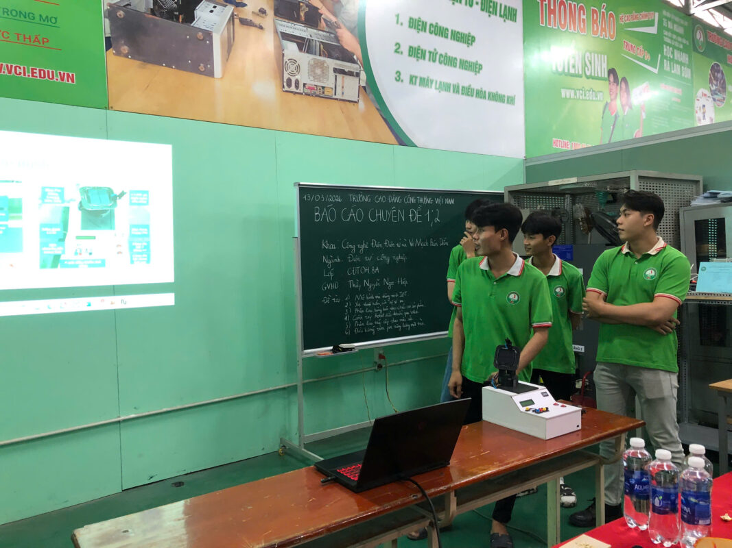 Điểm nổi bật trong buổi báo cáo chính là việc sinh viên không chỉ dừng lại ở lý thuyết mà đã trực tiếp nghiên cứu, thiết kế và hoàn thiện các sản phẩm có tính ứng dụng thực tế cao. Đây cũng là minh chứng rõ ràng cho định hướng đào tạo “học đi đôi với hành” mà VCI đang triển khai mạnh mẽ.